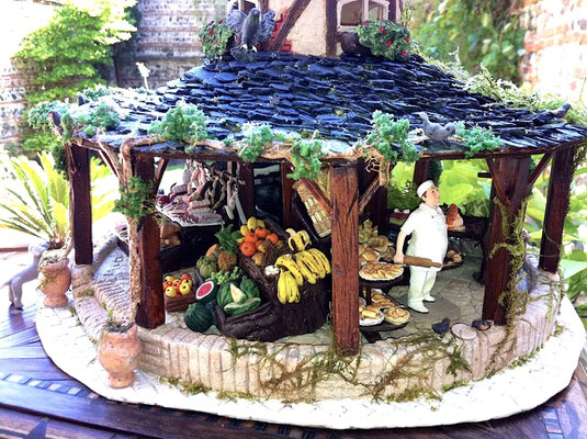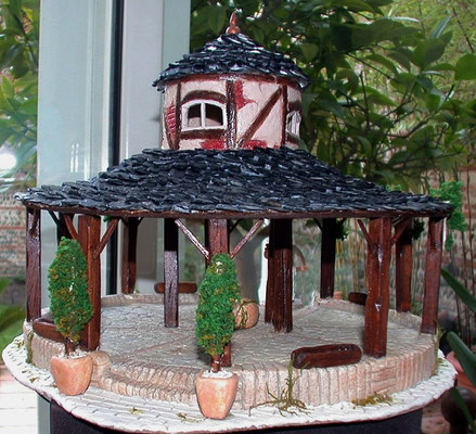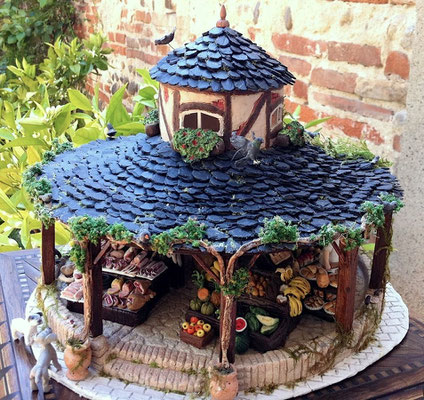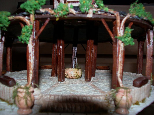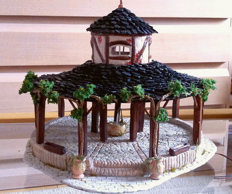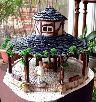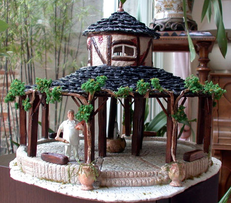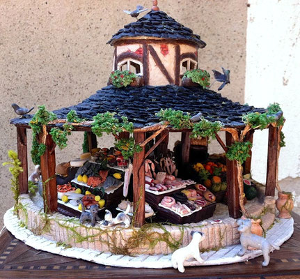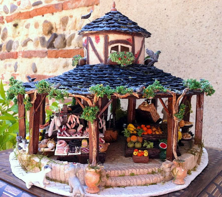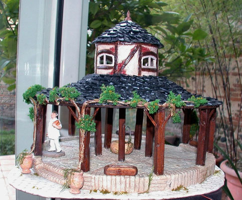 Cette halle est ma première vraie création, après un galop d'essai avec des petites fontaines, le pigeonnier... De petites choses pour en quelque sorte me faire la main. Là je tape pour la 1° fois dans du grand ! (enfin tout est relatif !!!)